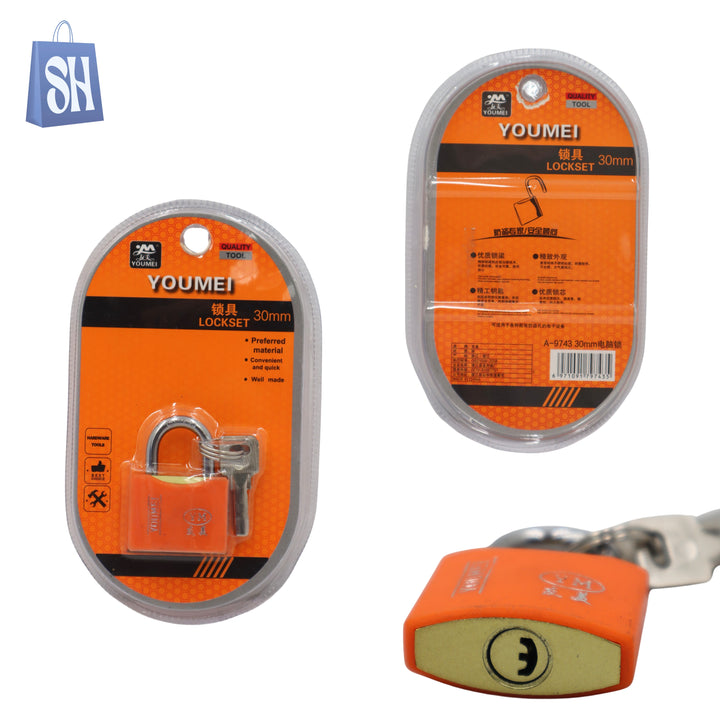 - قفل ألومنيوم عالي الأمان بقطر 30 مم مزود بأسطوانة دبوس نحاسية. مقاوم للكسر والاقتحام، مثالي لتخزين المقتنيات الثمينة.