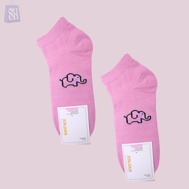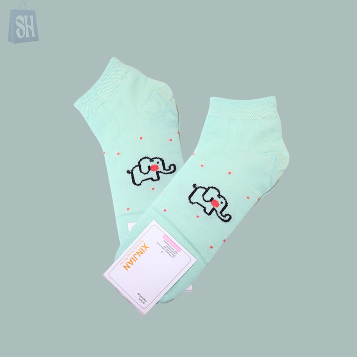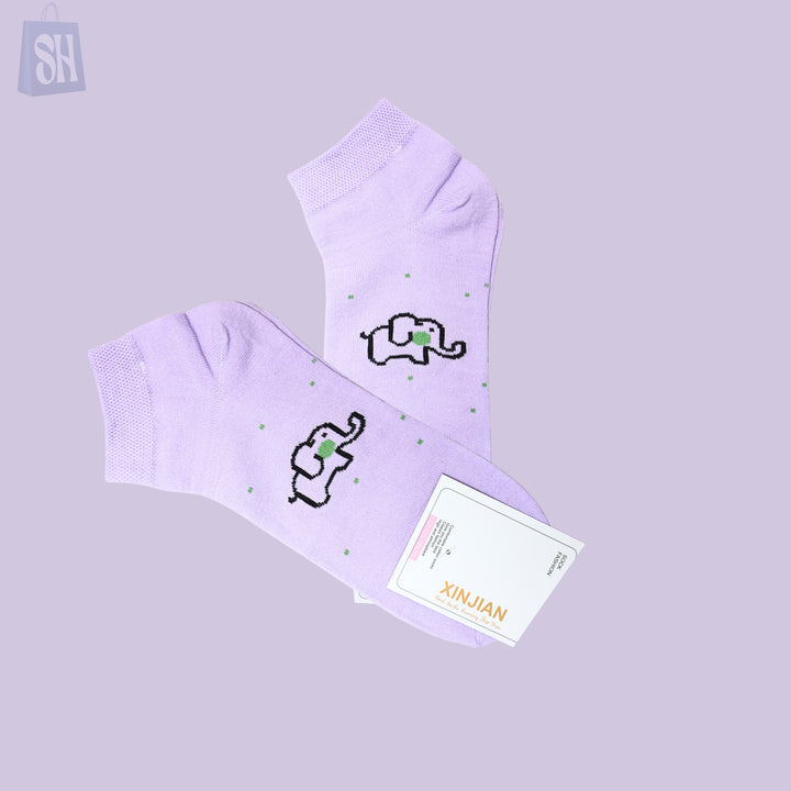These colorful cotton short socks with anti-perspirant and anti-bacterial properties feature a cute baby elephant design. They're perfect for those who want both fun and comfort in their socks, keeping feet dry and fresh throughout the day.