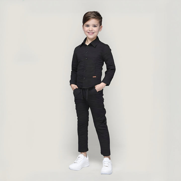 Our boys' shirt and pants set combines the finest materials with a stylish, comfortable design. This set ensures your child looks great while feeling comfortable all day long. With its modern cut and classic colors, it’s a versatile addition to any wardrobe. Whether it’s a day at school, a family event, or just casual playtime, this outfit will make your little one feel confident and stylish.