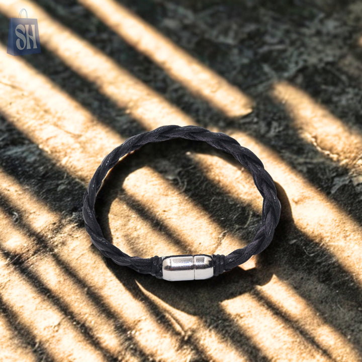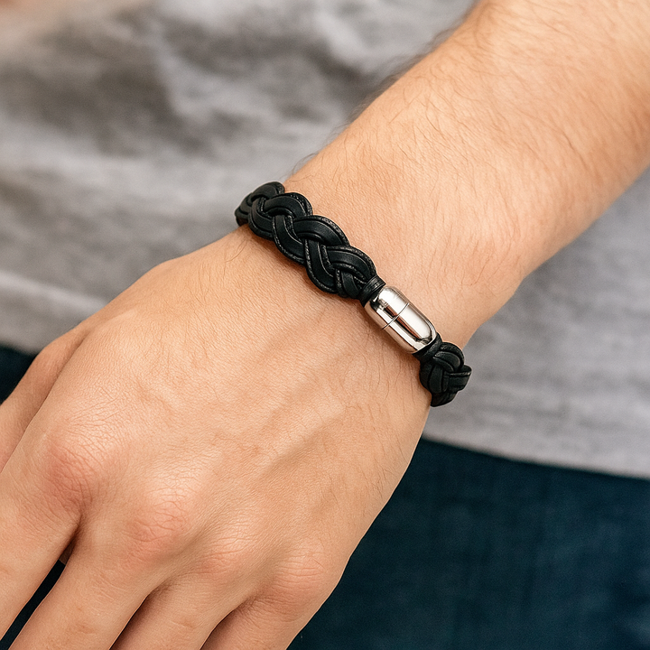 Add a touch of rugged elegance to your look with our Braided Boldness Bracelet. Crafted from durable faux leather and finished with a sleek magnetic clasp, this bracelet combines timeless design with modern masculinity. Perfect for everyday wear or as a statement piece, it's the ideal accessory for those who value style and strength.