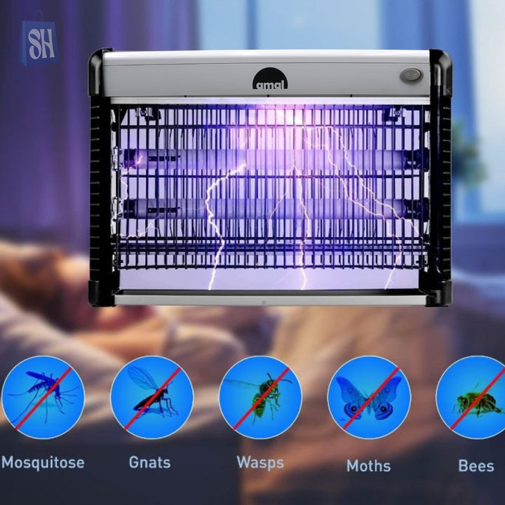 This is an electric insect killer lamp designed to attract and eliminate flying insects such as mosquitoes, flies, and moths. It uses ultraviolet (UV) light to lure insects into the device, where they are instantly electrocuted by a high-voltage metal grid. Ideal for indoor use in homes, offices, shops, and restaurants, the device is chemical-free, safe, and environmentally friendly. Easy to clean with a removable tray at the bottom for collecting dead insects.