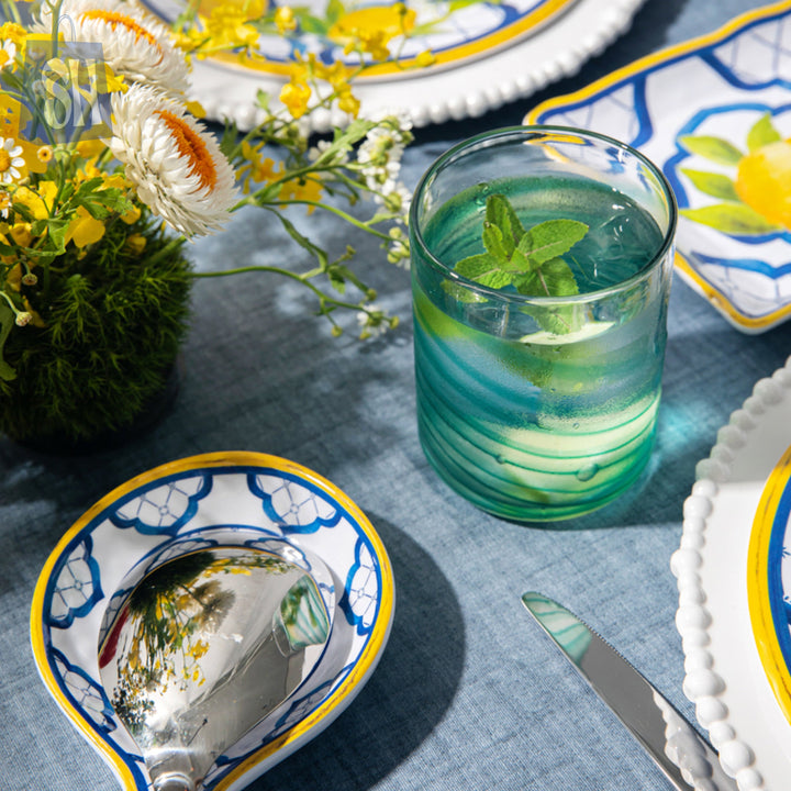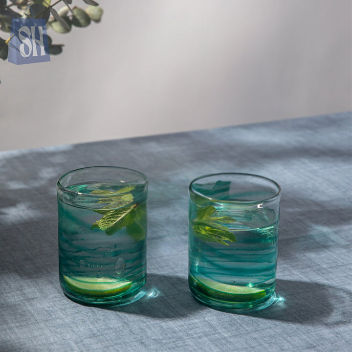Add a splash of elegance to your table with the Aqua Swirl Handblown Glass Tumbler. Featuring a beautiful blend of sea-green tones and artistic swirl patterns, each piece is uniquely handcrafted for a one-of-a-kind look. Its sturdy design and smooth finish make it perfect for serving water, juices, or cocktails. Ideal for everyday use or entertaining guests with style, this glass combines functionality with artistic charm.