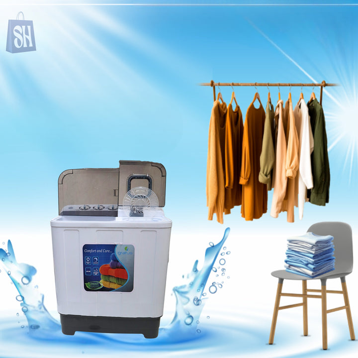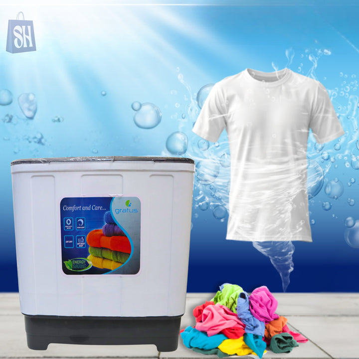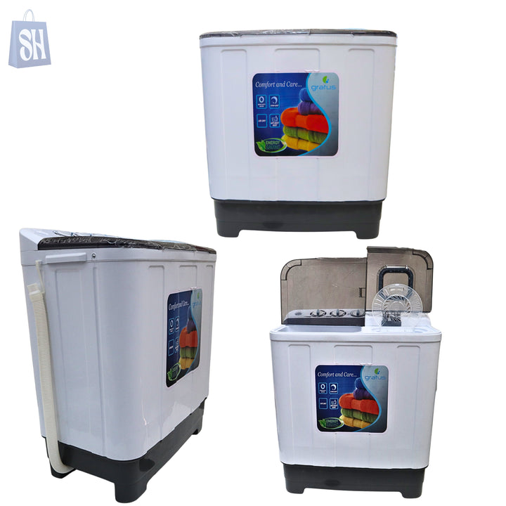 The Gratus Twin Tub Washing Machine with a 7 Kg capacity offers efficient and flexible laundry care. Designed for thorough cleaning and spinning, its separate wash and spin tubs optimize washing performance and drying efficiency. Ideal for medium-sized loads, this model ensures gentle fabric treatment while saving time and energy. Its user-friendly controls make operation straightforward, providing expert-level cleaning results at home.