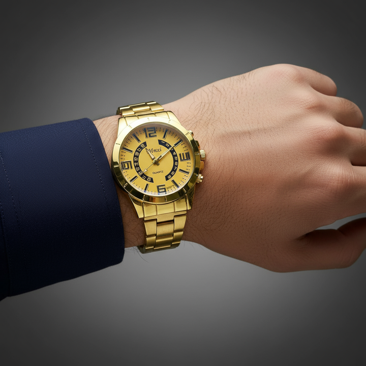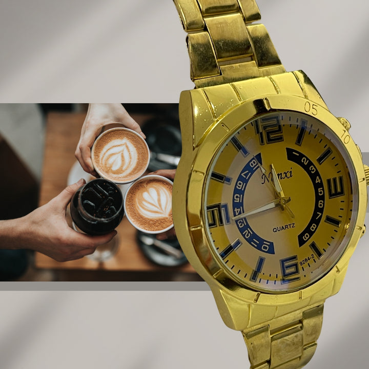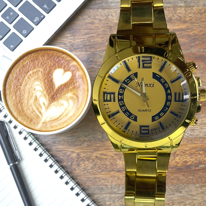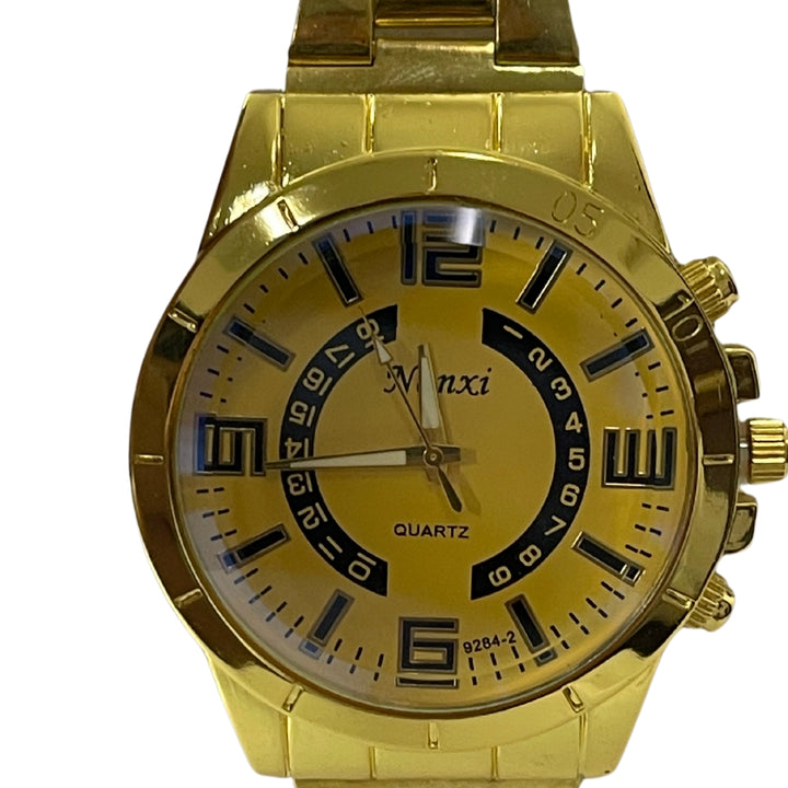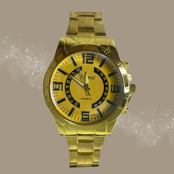 Command attention with the bold and distinguished Maxxi Titan, a men’s gold-tone wristwatch that radiates strength and style. Designed for the confident gentleman, this timepiece combines precision engineering with a commanding aesthetic.