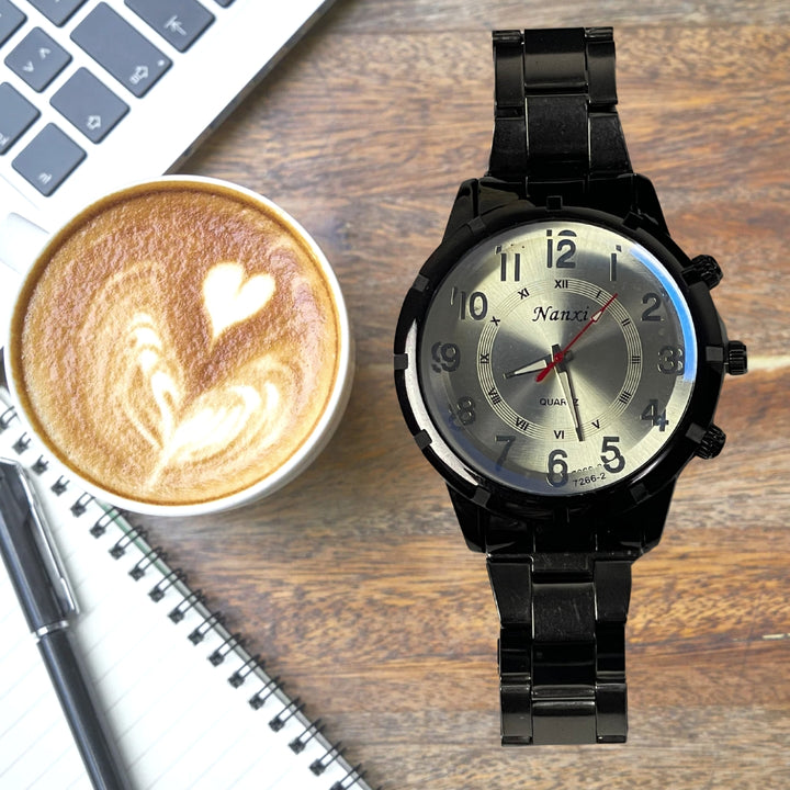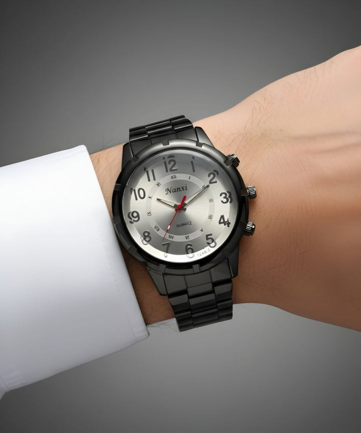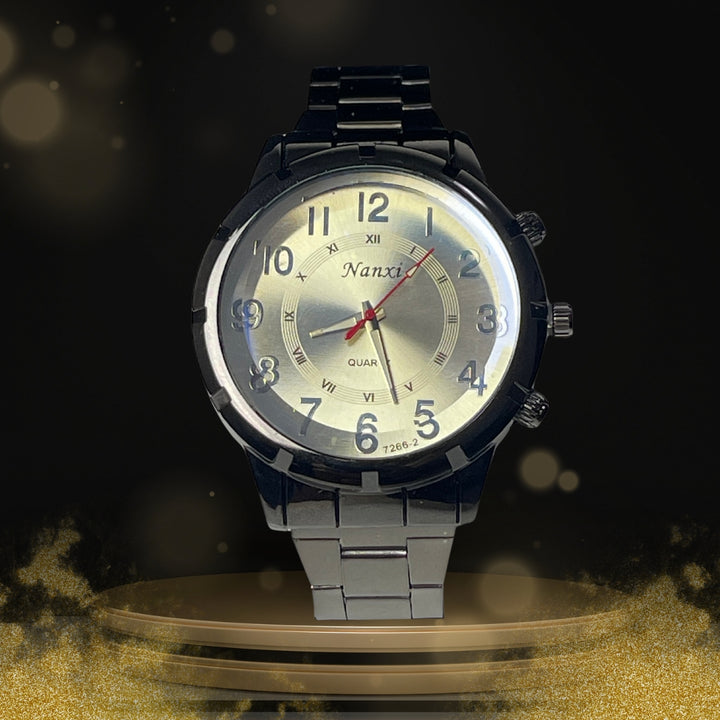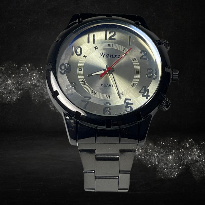 A bold statement of sophistication and function — the Nanxi Elegance watch combines modern flair with classic design. Featuring both Arabic and Roman numerals on a sleek metallic dial, this piece is crafted for those who appreciate refined detail.