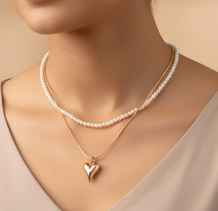 Add a touch of charm to your everyday style with this elegant layered necklace set. Featuring a delicate strand of faux pearls paired with a gold-tone chain and a sleek, open heart pendant, this piece strikes the perfect balance between modern romance and timeless sophistication.