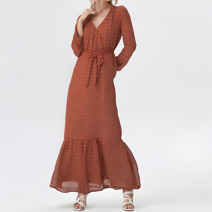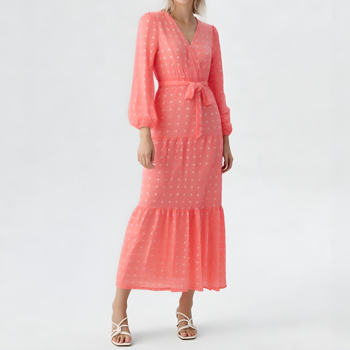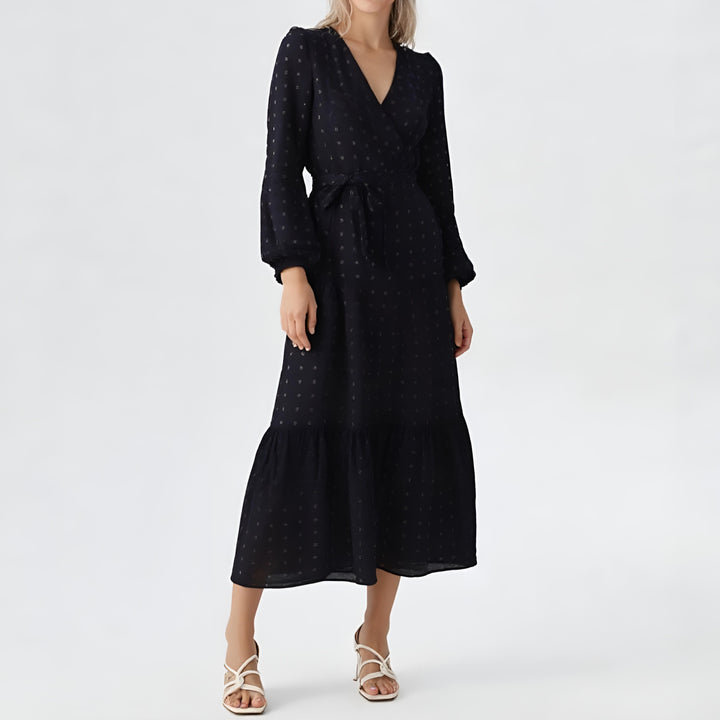 Wrap-Style Dotted Maxi Dress – Timeless Elegance
