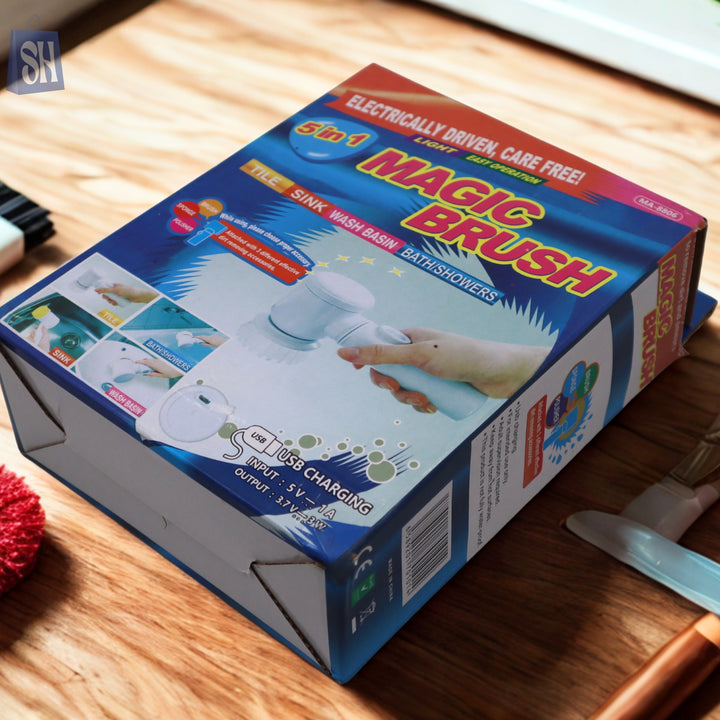 Simplify your cleaning routine with the Magic Brush 5-in-1 Electric Cleaning Brush. This powerful, rechargeable brush makes it effortless to clean tiles, sinks, wash basins, and bath areas with ease. Featuring multiple interchangeable brush heads, it tackles dirt, soap scum, and grime in hard-to-reach areas. The ergonomic design ensures a comfortable grip, while USB charging offers convenient cordless use. Lightweight yet powerful, the Magic Brush delivers sparkling results every time — perfect for keeping your home fresh and spotless with minimal effort.