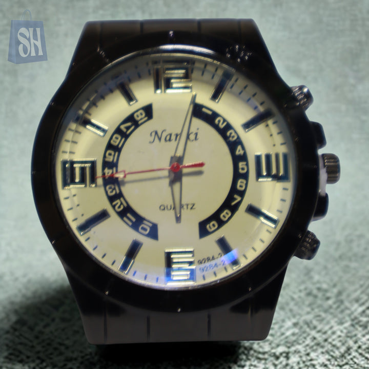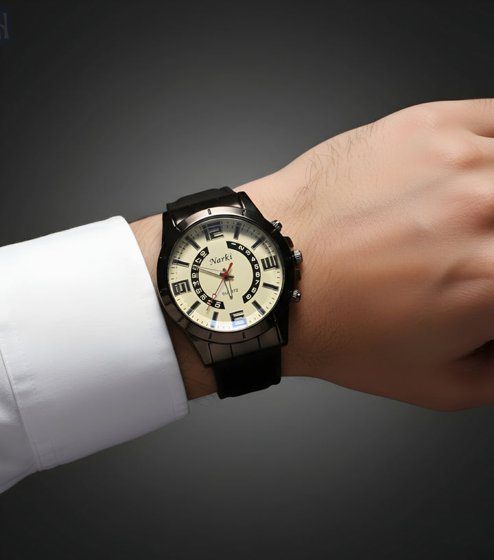 Elevate your style with the Narki Classic Quartz Watch – a perfect blend of sophistication and bold design. Featuring a unique dual-layer dial with modern Arabic numerals and Roman numeral accents, this timepiece is designed for those who appreciate both tradition and innovation. The durable black case and textured crown buttons add a sporty edge, while the precision quartz movement ensures reliable timekeeping. Whether you're dressing for a business meeting or a casual outing, the Narki watch delivers standout elegance at every hour.