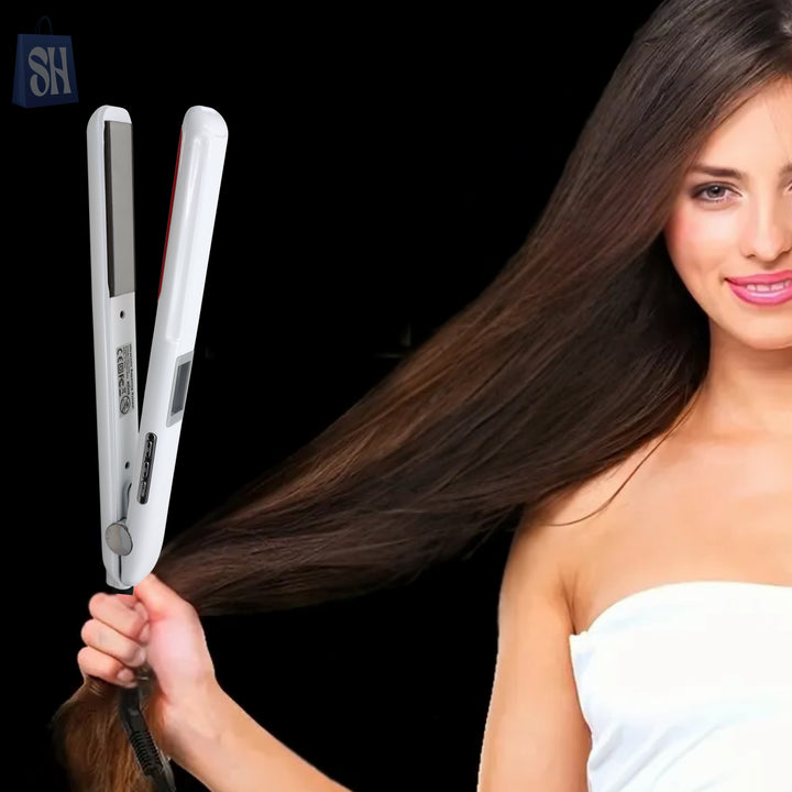 Achieve salon-quality results at home with the Professional Flat Iron. Designed with advanced heating technology, it delivers smooth, sleek, and shiny hair in minutes. Its lightweight design and ergonomic grip make styling effortless, while the high-performance ceramic plates glide seamlessly to reduce frizz and protect your hair from damage. Perfect for straightening, curling, or adding waves, this flat iron is your go-to tool for flawless hairstyles every day.