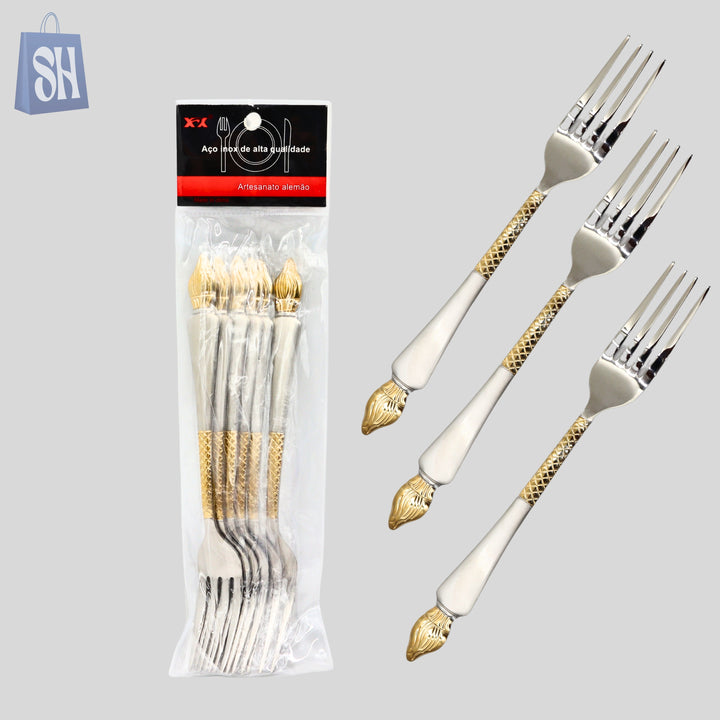 “Regalia™ Gold-Accent Stainless Steel Fork Set (6 pcs)”