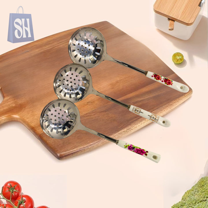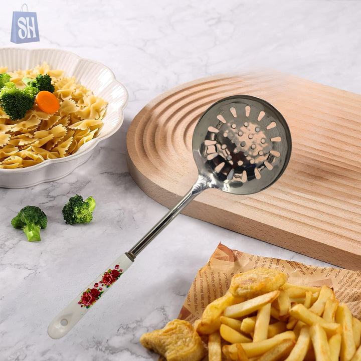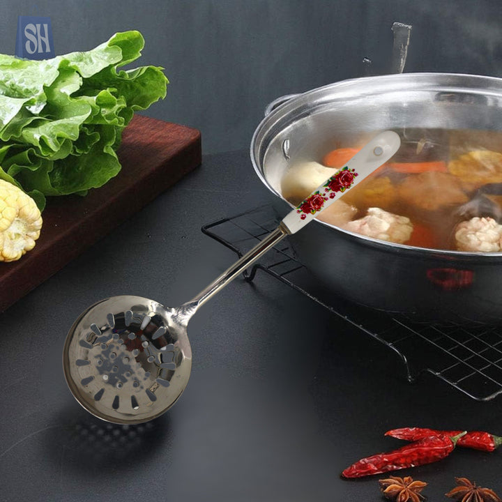 Stainless Steel Skimmer Spoon with Floral Handle – Function Meets Elegance!