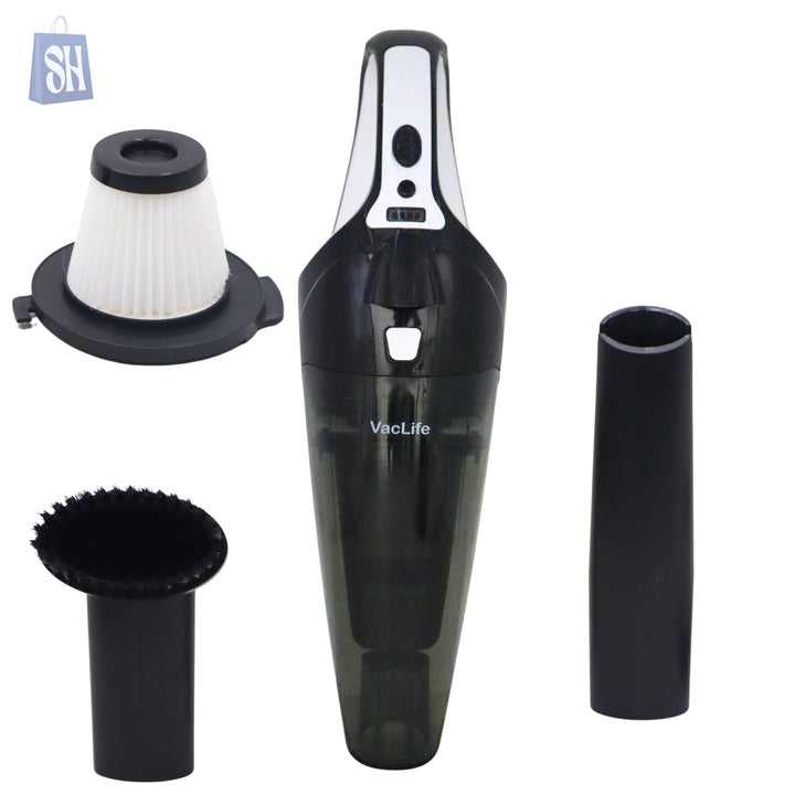 The VacLife Handheld Vacuum Cleaner is a portable and cordless cleaning device designed for quick and efficient cleaning of dust, crumbs, pet hair, and debris. It comes with multiple attachments, including a crevice nozzle, a brush tool, and a HEPA filter for enhanced performance. Ideal for cleaning cars, sofas, stairs, and other hard-to-reach areas. Lightweight and easy to use, this vacuum is perfect for everyday cleaning tasks.